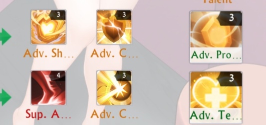- 【聖なる加護】:2ターンの間、対象が受けるダメージの30%はクリムが代わりに受ける。この効果は解除されない。また、全ての制御を無効化。